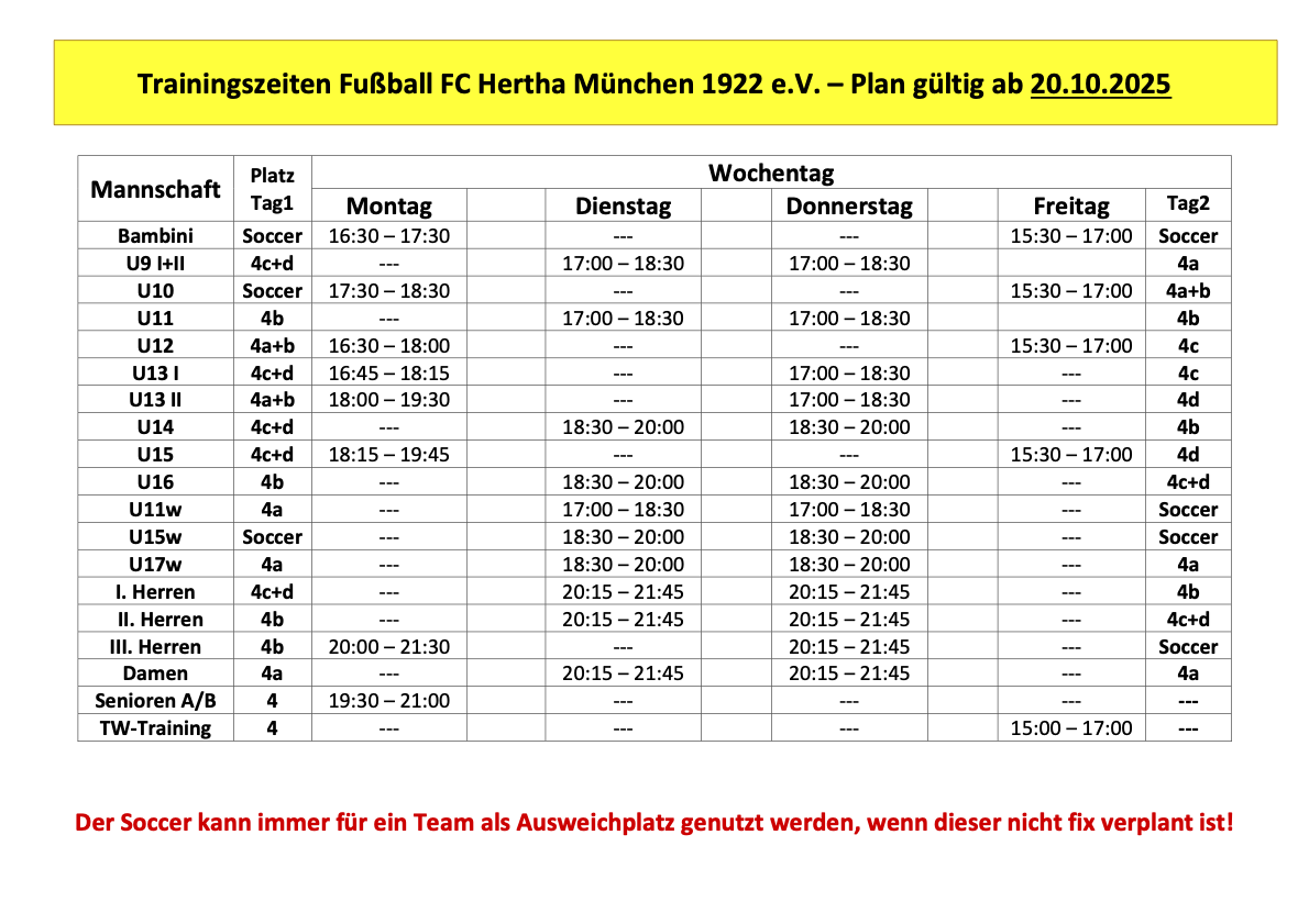 Trainingszeiten